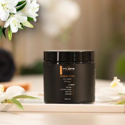 המסכה שלנו מסדרת "איילת גייר" מכילה חומרים טבעיים התומכים בגוף השערה.